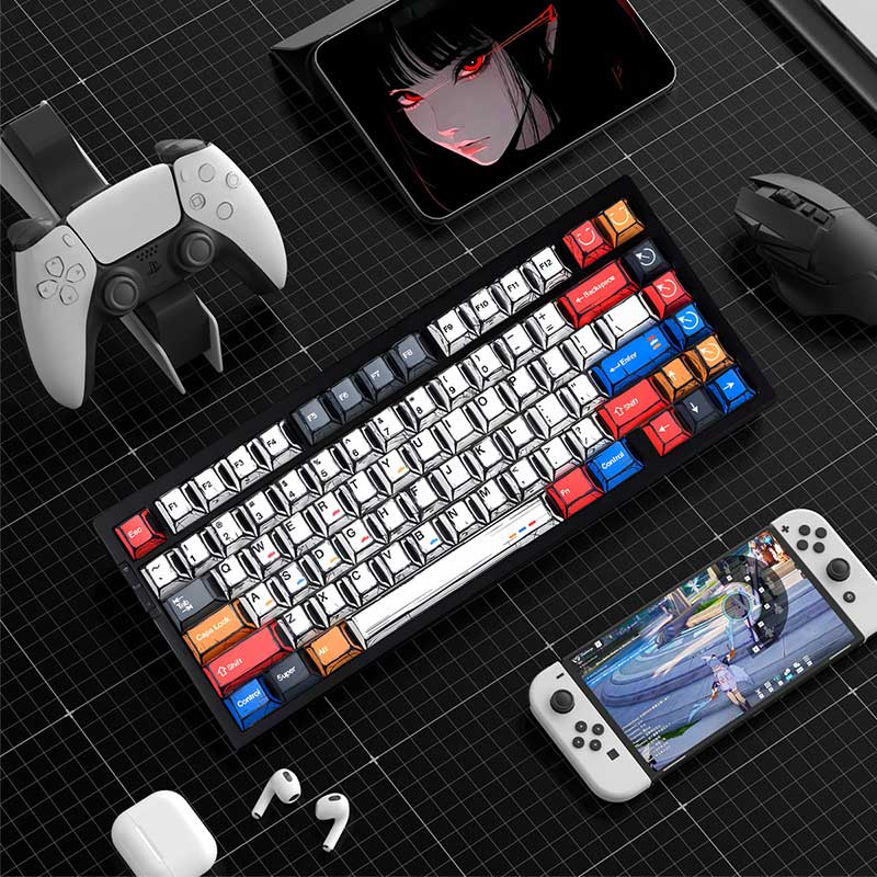 Step into a world where every keystroke feels like part of an adventure. This keycap set takes inspiration from the vibrant palettes of anime—pure white blended with bold reds, blues, and yellows that pop with character.