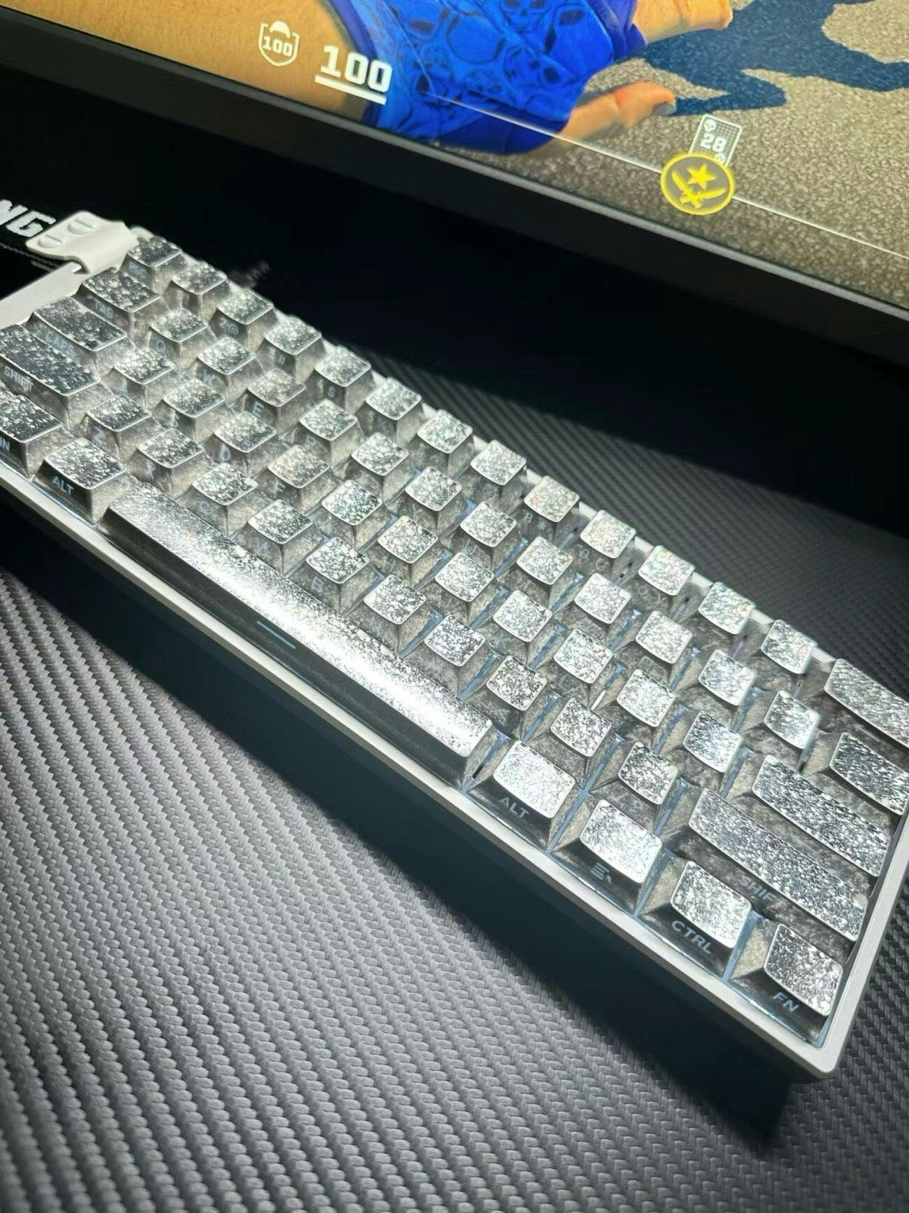 ● Frost-Themed Design:Silver base with frost textures, each key uniquely patterned, bringing a cool, refined vibe to your desk.